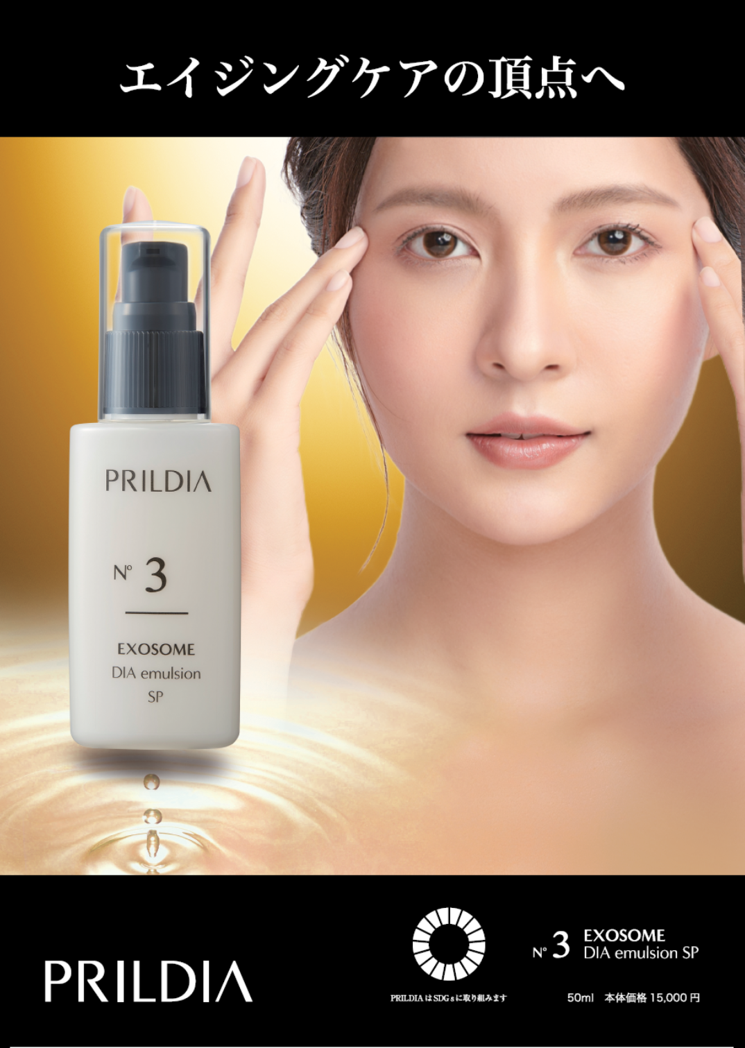 PRILDIAはエクソソーム・ヒト幹細胞培養液・プラセンタ・EGF・FGF・抗糖化成分アメリオックスなどを贅沢に配合。